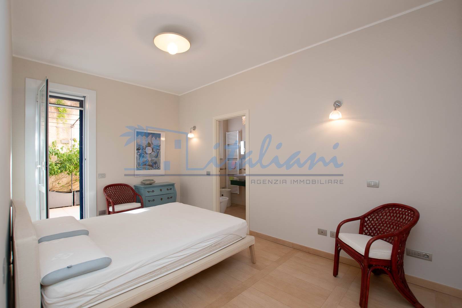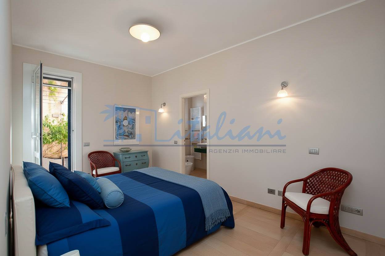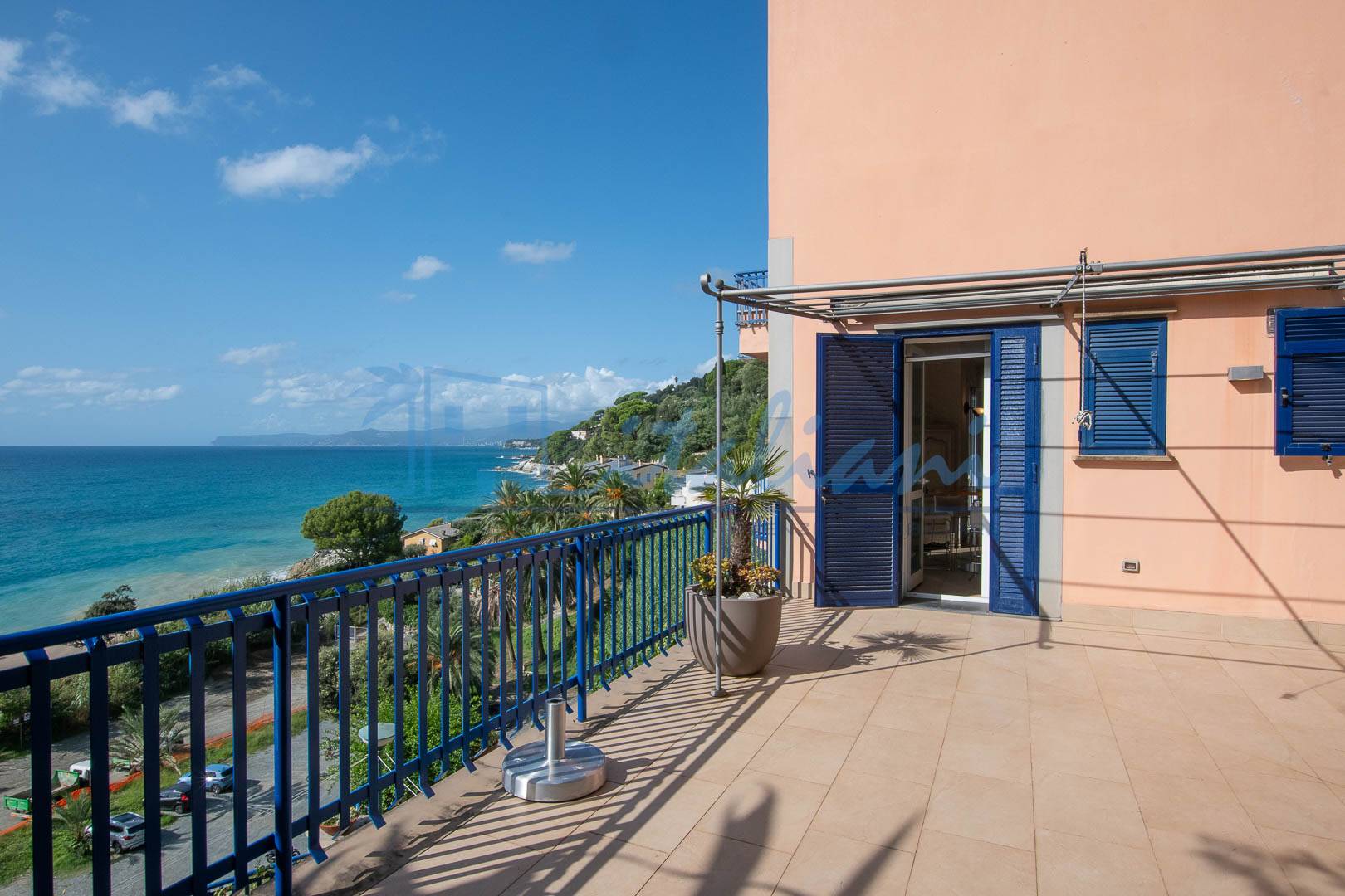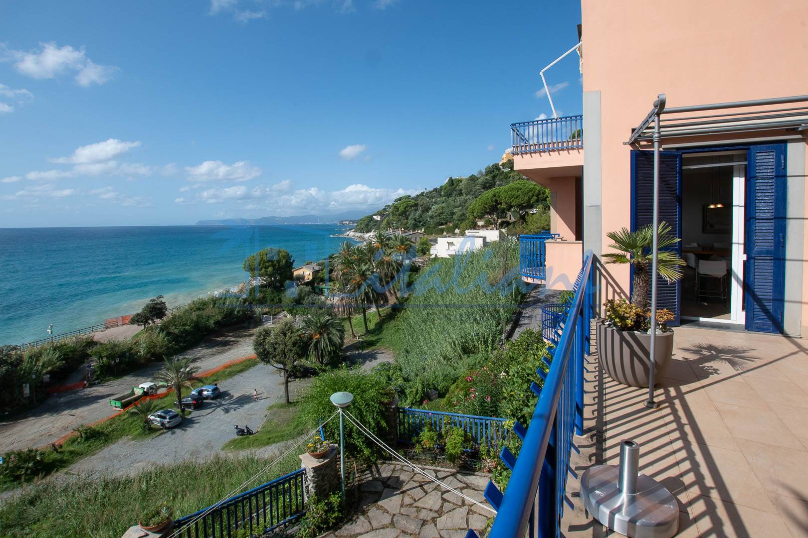 L'Appartamento è stato recentemente e finemente ristrutturato. E' composto da un ingresso che affaccia su di un ampio e luminoso soggiorno con zona cucina a vista e una zona pranzo da cui, attraverso le ampie finestre, si può godere una straordinaria vista sul mare. Proseguendo si trova la zona notte, composta da tre camere da letto: la prima, spaziosa, molto spaziosa, ha accesso sulla terrazza ed è dotata di bagno privato; le altre due, anch'esse matrimoniali ma di una dimensione leggermente più contenuta, affacciano sul retro del condominio ed in particolare sul giardino condominiale. A completare secondo bagno finestrato.
