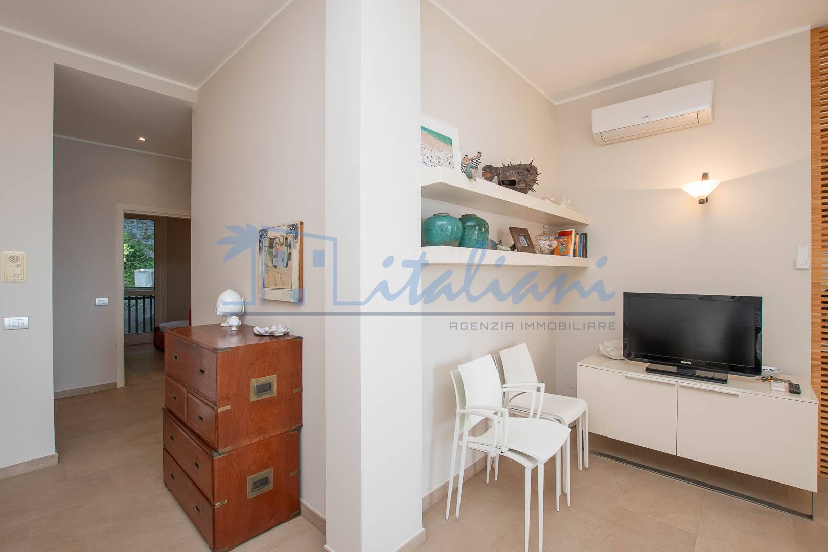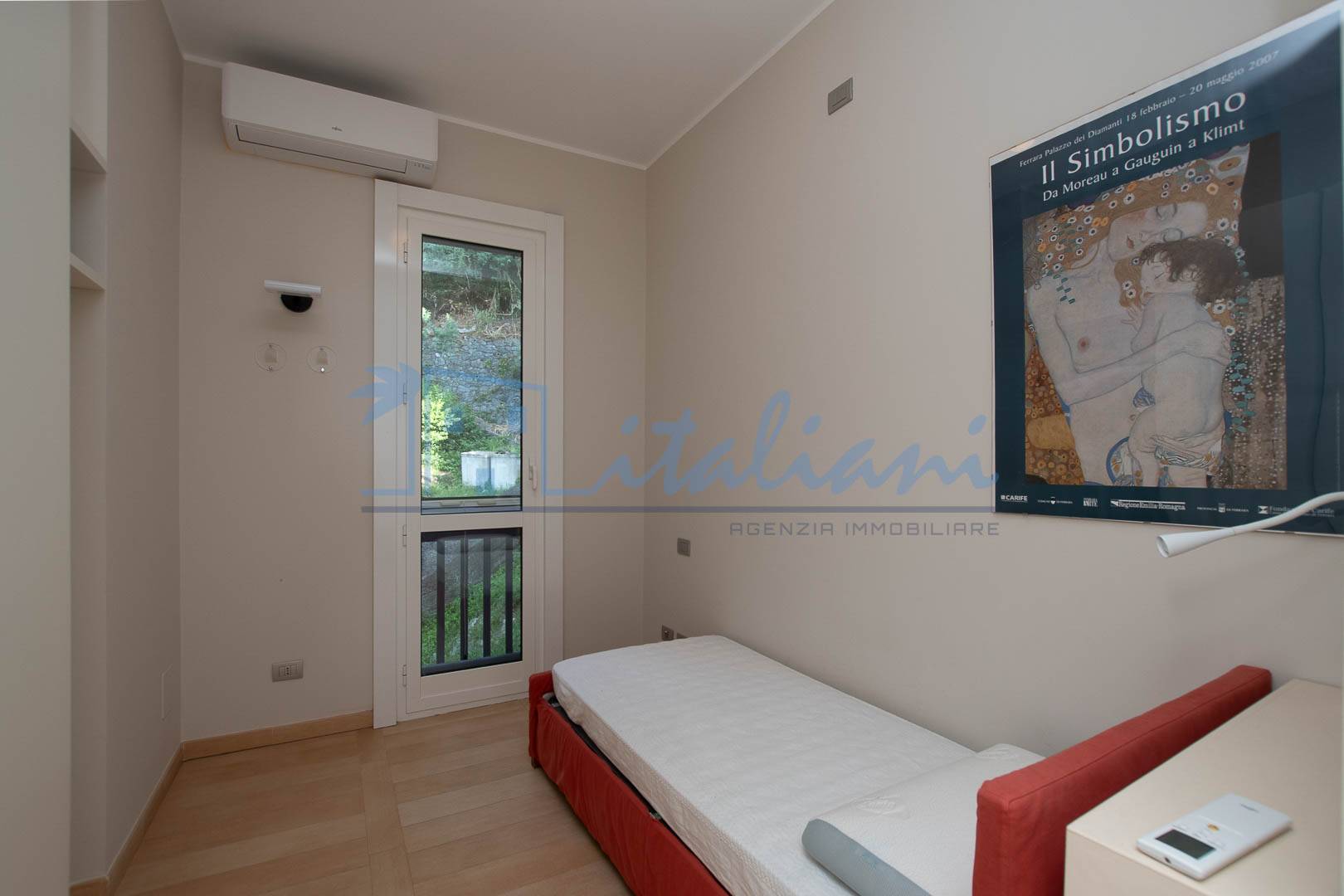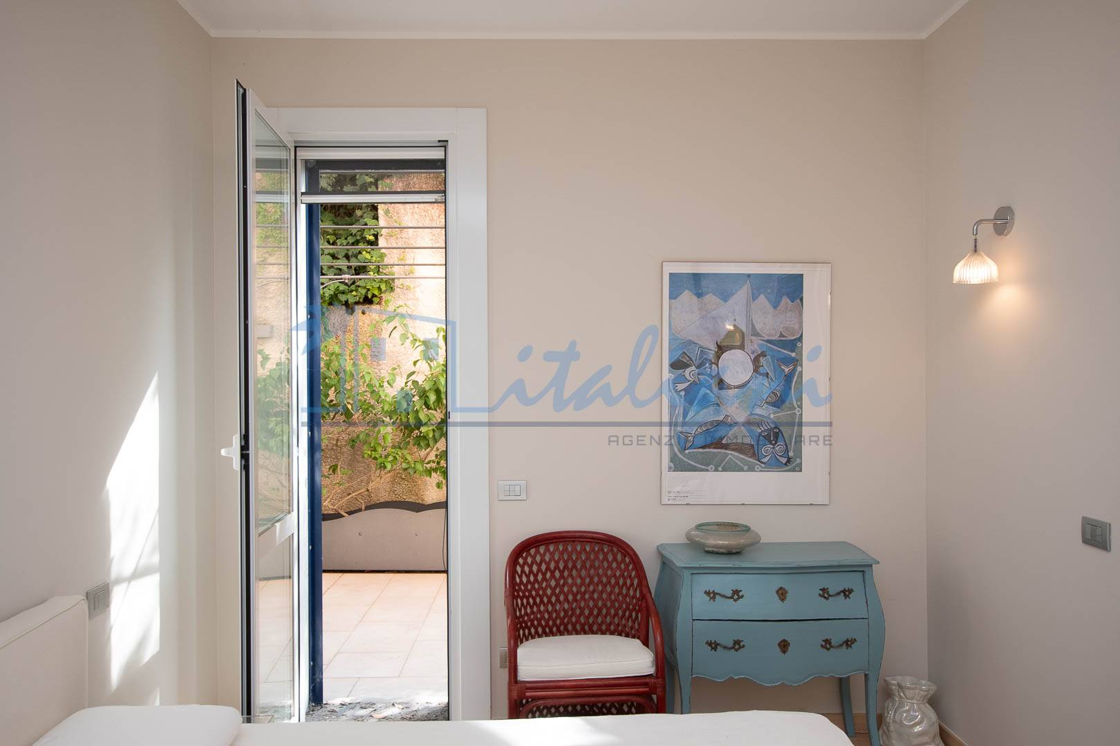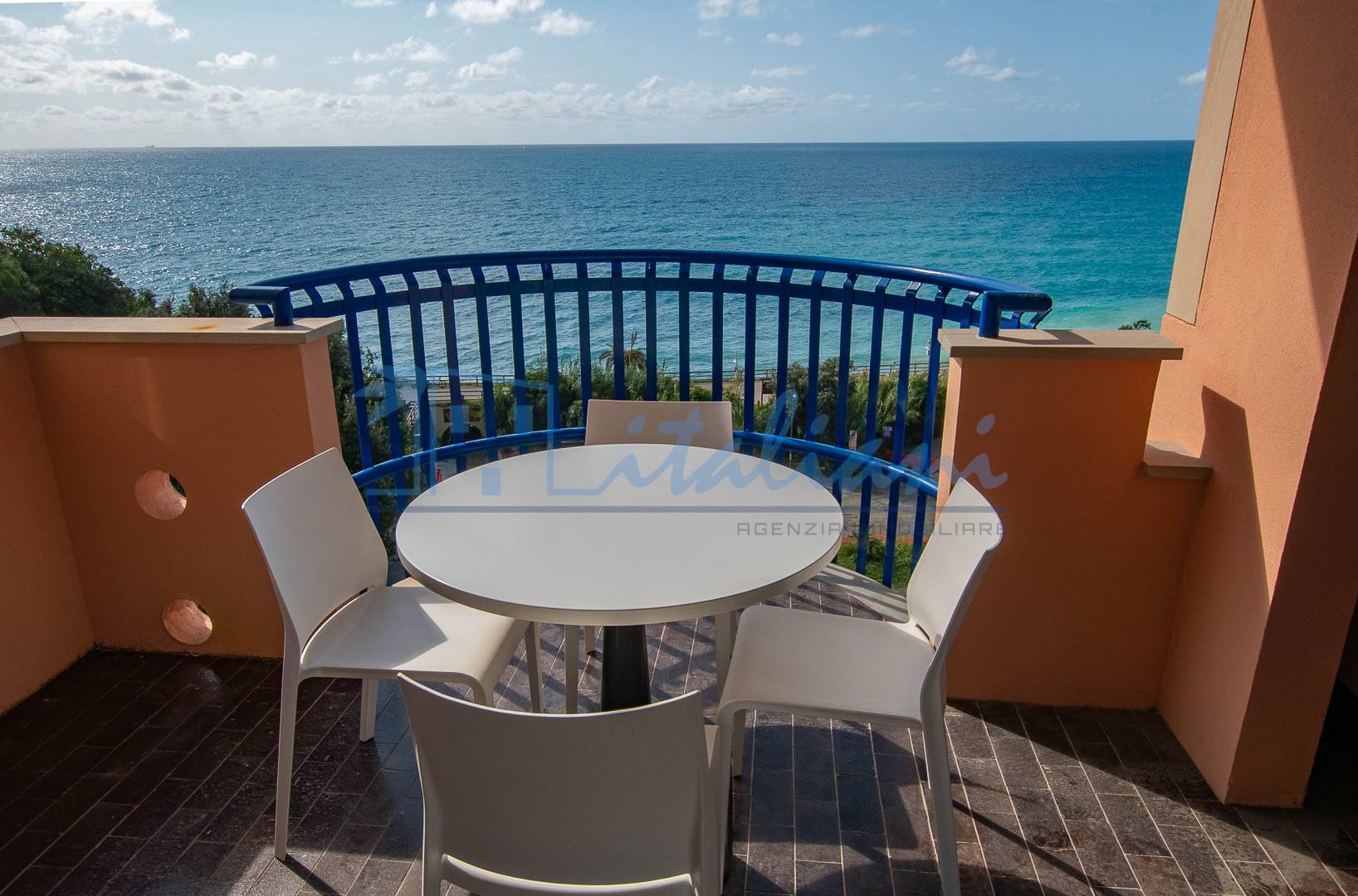 L'Appartamento è stato recentemente e finemente ristrutturato. E' composto da un ingresso che affaccia su di un ampio e luminoso soggiorno con zona cucina a vista e una zona pranzo da cui, attraverso le ampie finestre, si può godere una straordinaria vista sul mare. Proseguendo si trova la zona notte, composta da tre camere da letto: la prima, spaziosa, molto spaziosa, ha accesso sulla terrazza ed è dotata di bagno privato; le altre due, anch'esse matrimoniali ma di una dimensione leggermente più contenuta, affacciano sul retro del condominio ed in particolare sul giardino condominiale. A completare secondo bagno finestrato.
