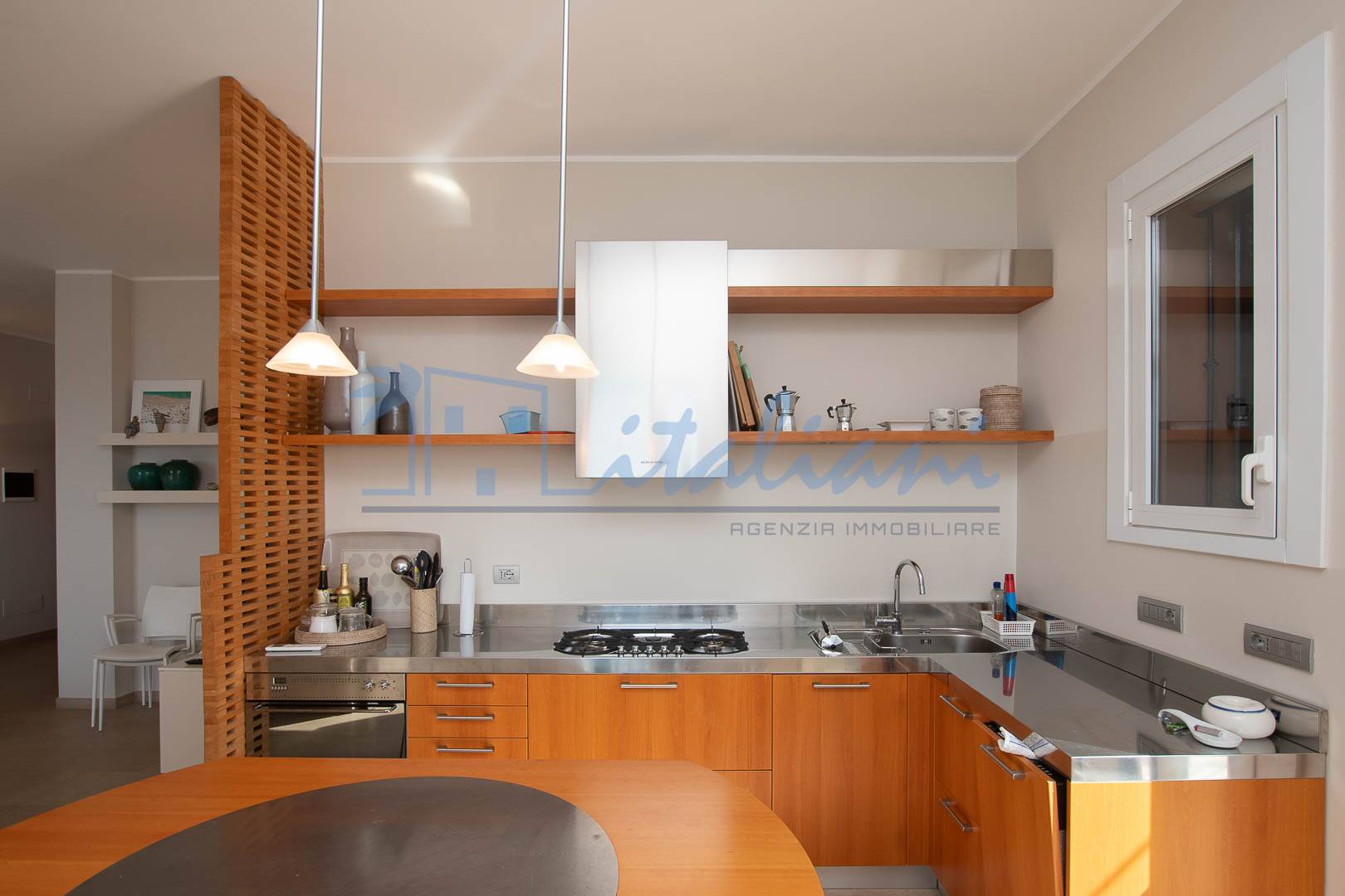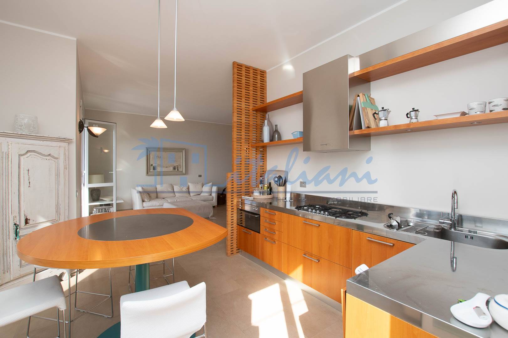 A rendere davvero unico questo alloggio sono l'ampia balconata e la grande terrazza, entrambe rivolte a sud e con vista aperta sul mare.