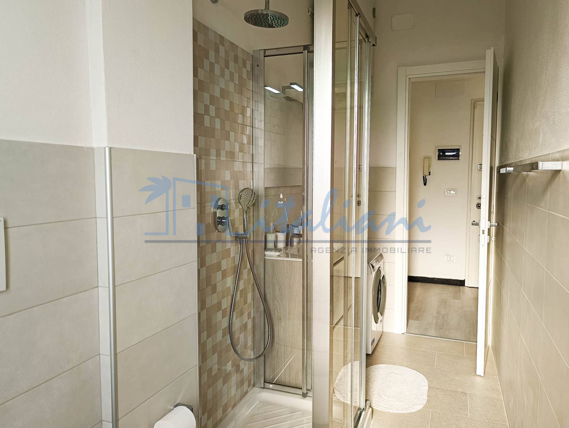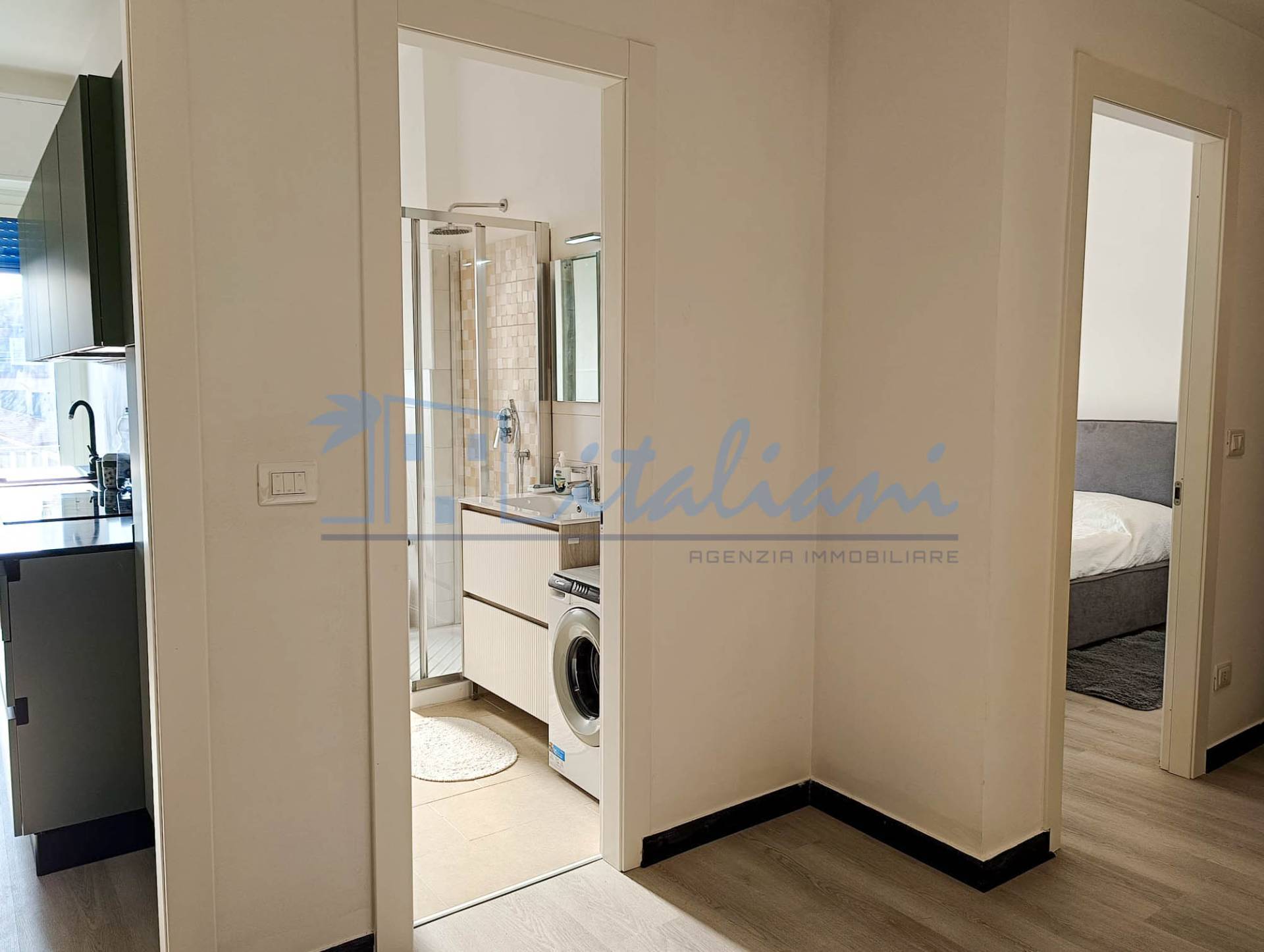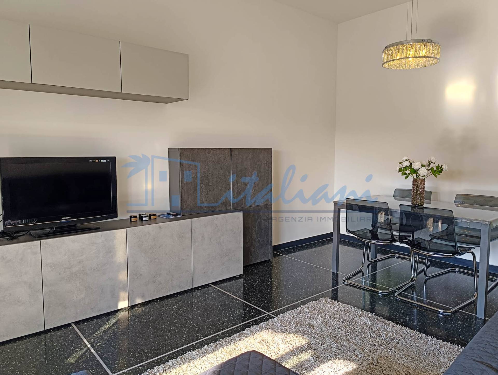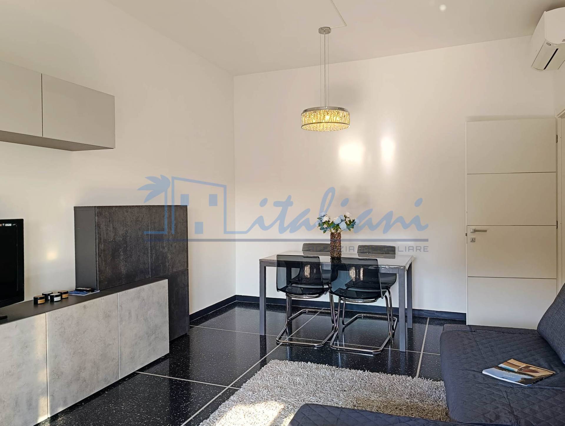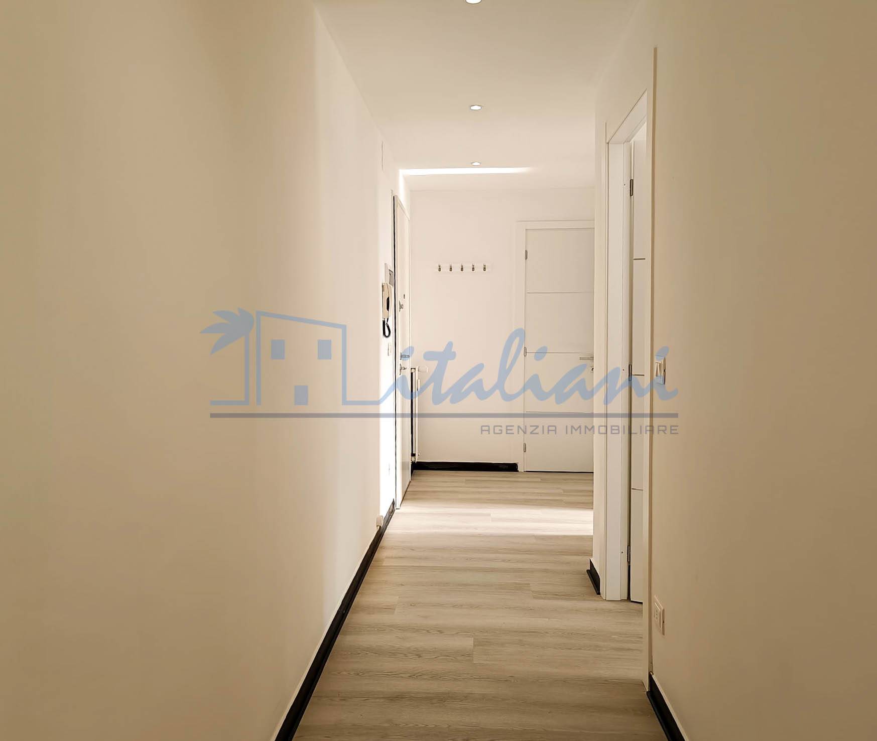 L'alloggio, completamente ristrutturato e nuovo di arredo, risulta così composto: ingresso a corridoio, cucinotto, camera da letto matrimoniale, salotto, ripostiglio e bagno, finestrato e dotato di box doccia. Dal salotto e dalla camera si accede alla vivibile balconata dalla quale si gode di vista mare.