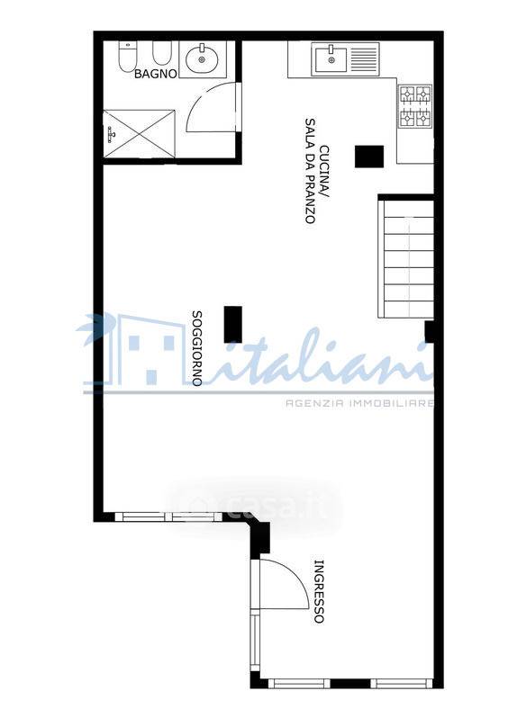 L'immobile si sviluppa su una superficie totale di 81 metri quadrati e risulta suddiviso su due piani mediante un soppalco. Varcata la soglia di ingresso si accede al soggiorno con cucina a vista e bagno; al piano superiore soppalcato si trova la zona notte.