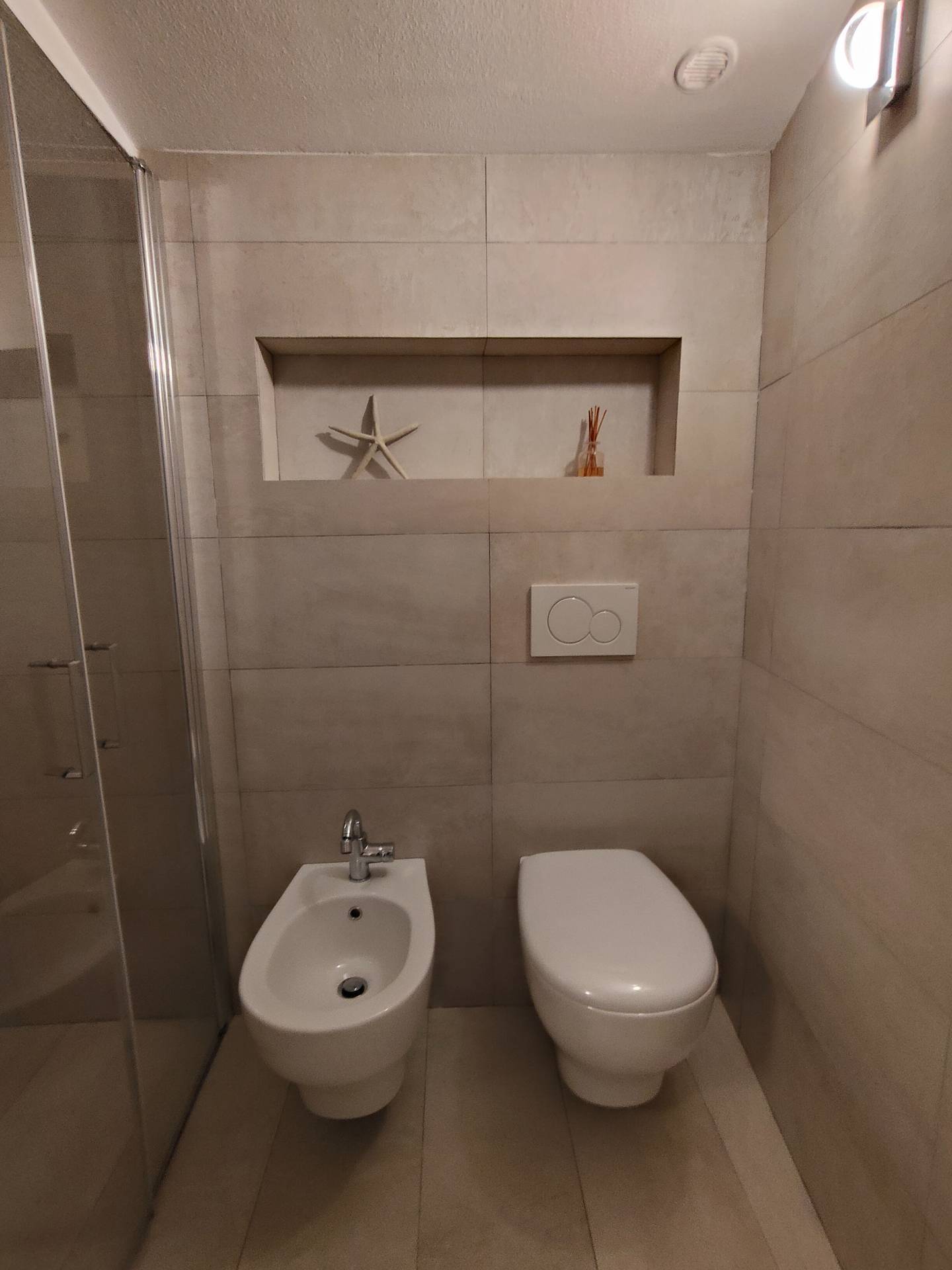 L'Appartamento è esposto a sud- ovest ed è formato da un soggiorno doppio, organizzato in zona pranzo con angolo cottura e zona living, comunicanti attraverso una porta a soffietto, camera da letto matrimoniale e bagno. Grazie alla porta a soffietto è possibile chiudere la zona living e trasformala in una seconda zona notte. Dagli ambienti principali abbiamo 2 porte fineste per poter uscire sulla terrazza, spazio esterno molto riservato e piacevole, dove poter trascorrere il tempo libero all'aria aperto: qui abbiamo anche un magazzino, organizzato come locale lavanderia/ impianti.